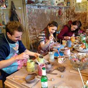 Your pots and handcrafted works of art will be dried, fired, glazed and fired again, ready to be collected from the studio or posted back to you around eight weeks later.